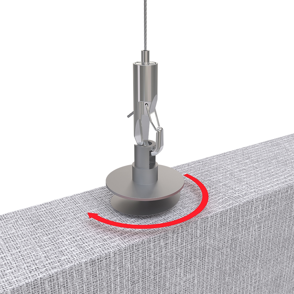 Speziell Elemente zur akustischen Optimierung von Räumen können so gekonnt installiert werden. Dabei kann der Eco Slim in einem weiten Befestigungswinkelbereich arbeiten und richtet sich selbständig zu den Fixpunkten an Wand oder Decke aus.