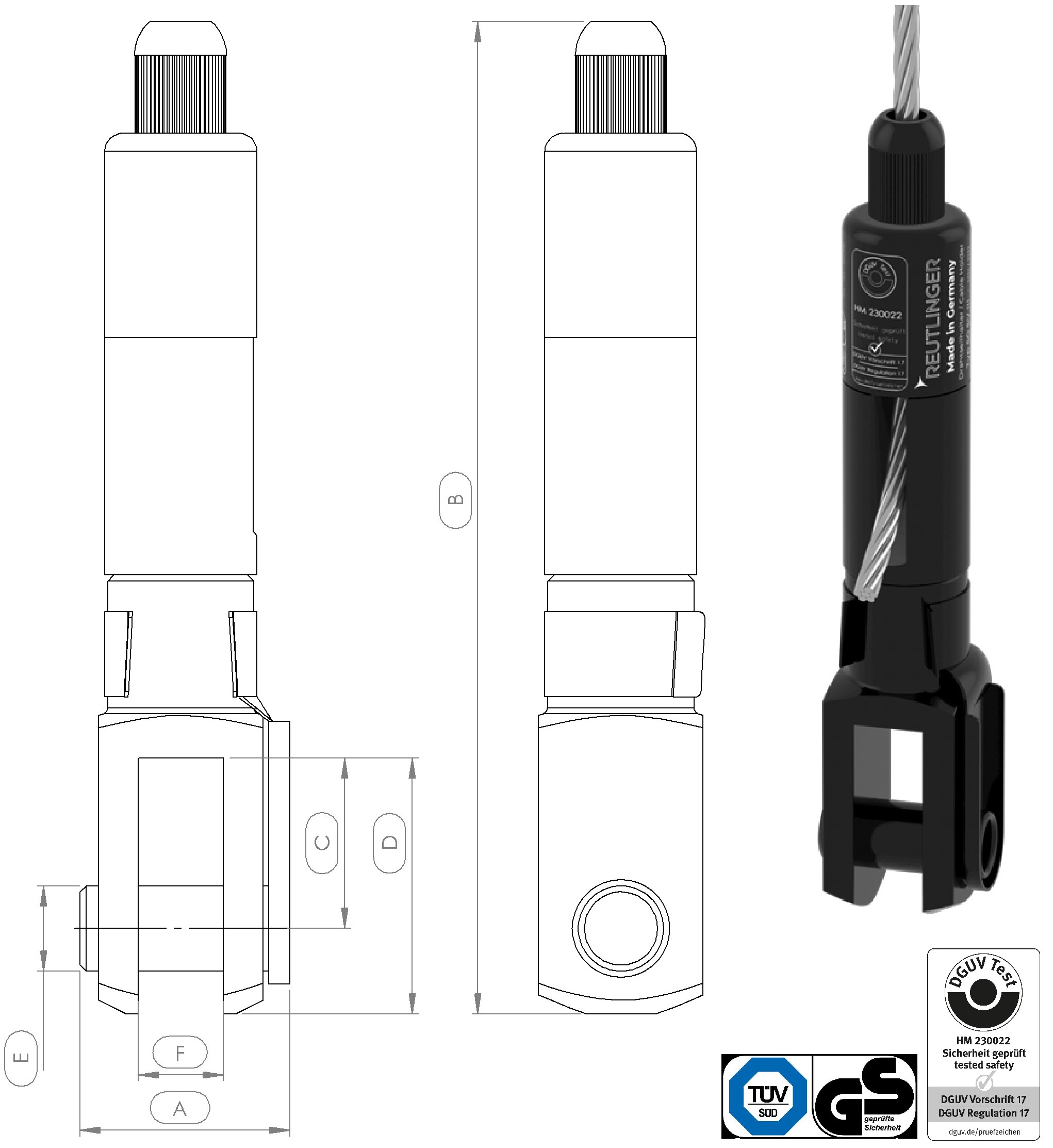 Holder type 50 SV III ZW, fork 14x28 and safety bolt, lateral rope exit, black